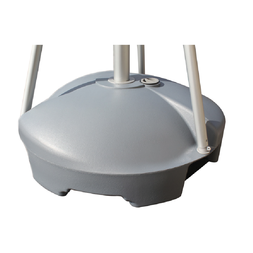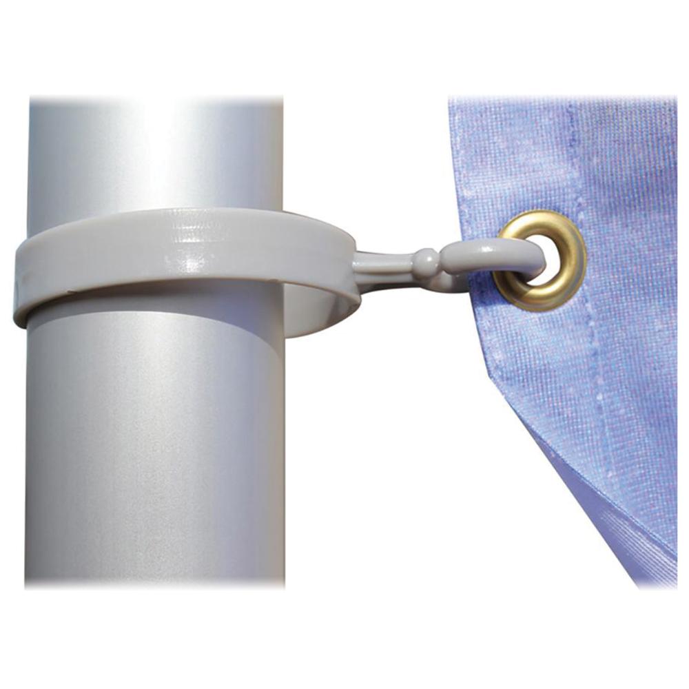 - Aluminum poles with plastic end caps, 9 plastic clips for sides and 5 plastic clips for top, Water tight plastic base, 4 aluminum support legs with plastic clips
