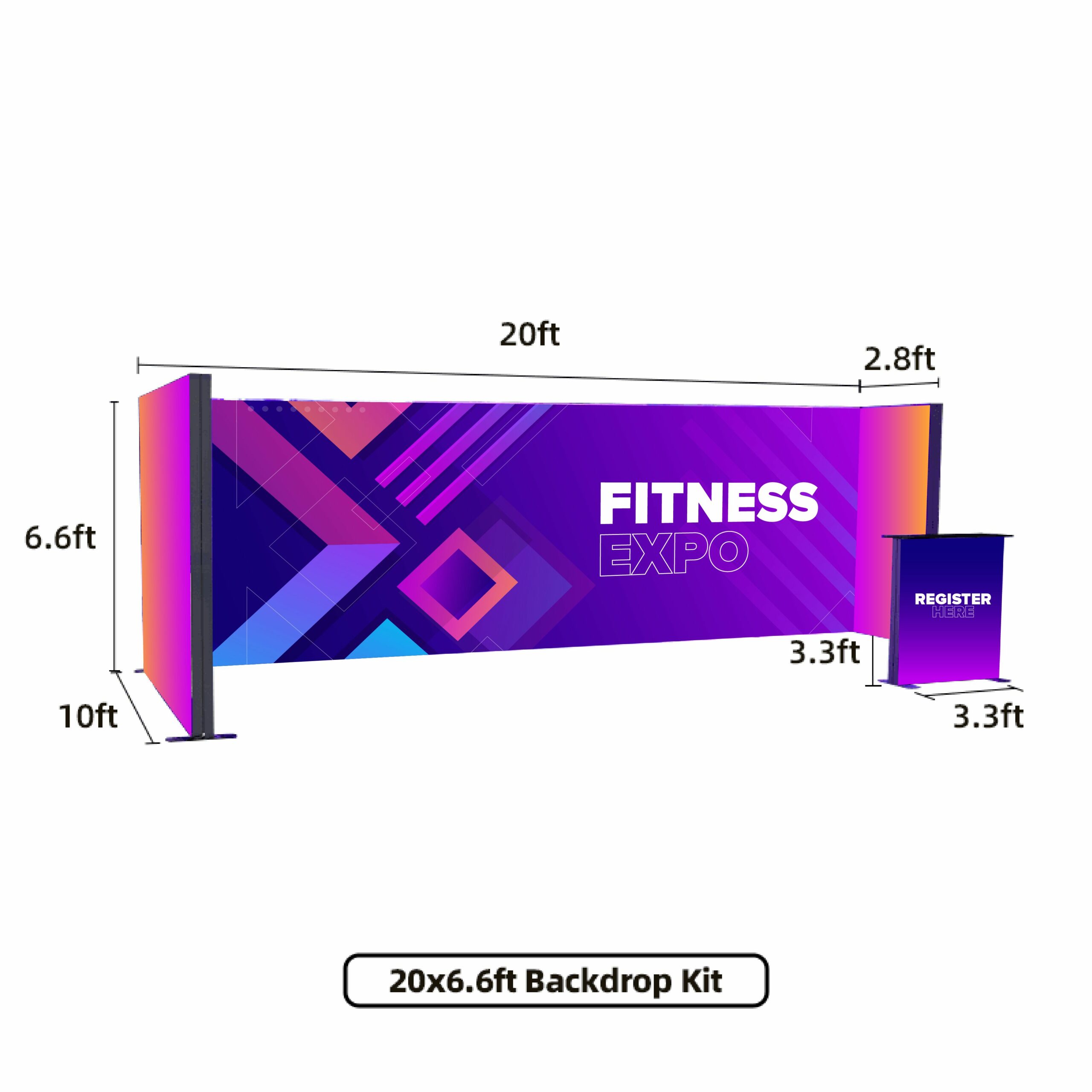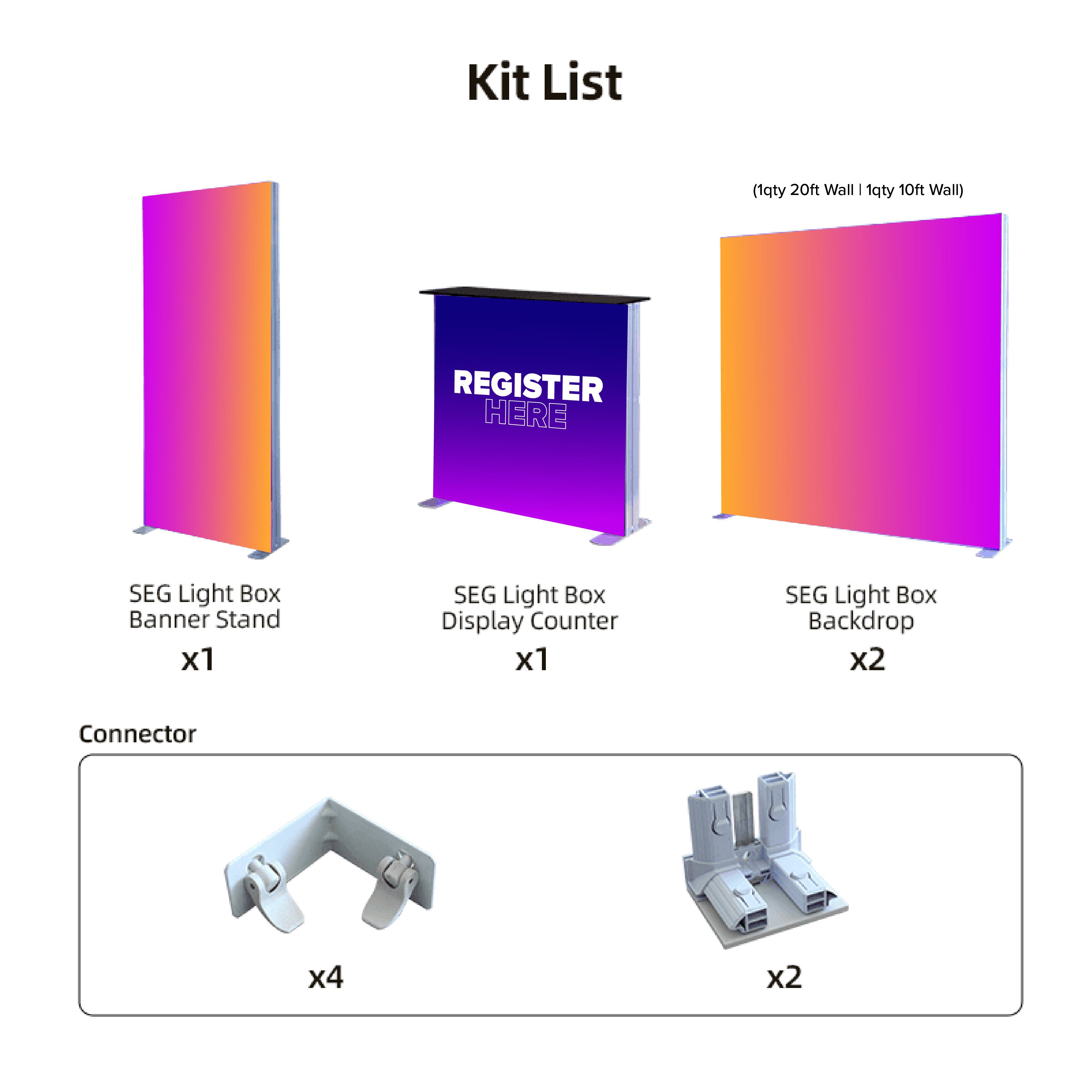 - (1) 20′ x 6′ 6″ SEG Frame Back Wall
