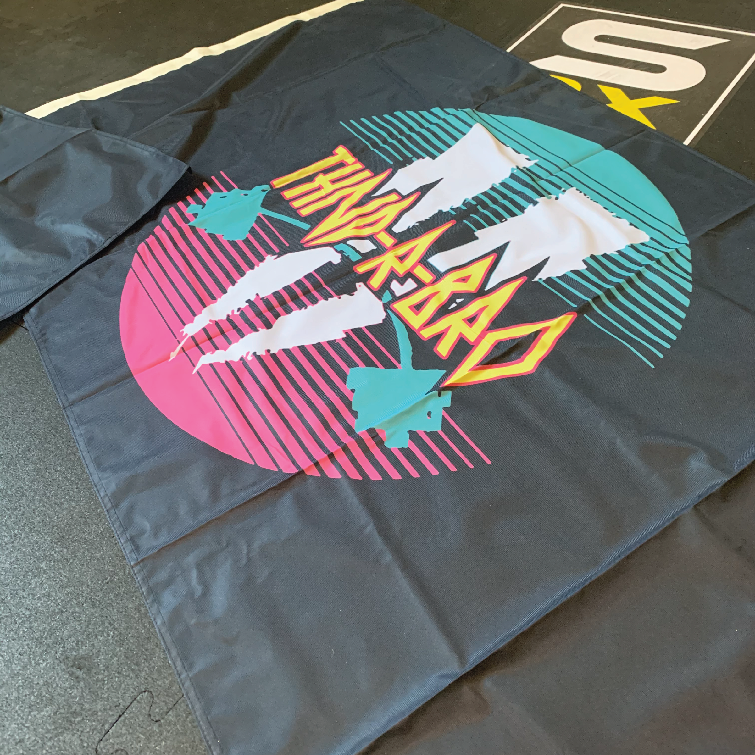 USAW custom flags can elevate your box or space. Flags are printed with high-quality eco-safe inks through our dye sublimation process. Whether you are flying your flag on a pole or simply hanging it in your gym, we offer two types of finishing to accommodate your displaying needs.