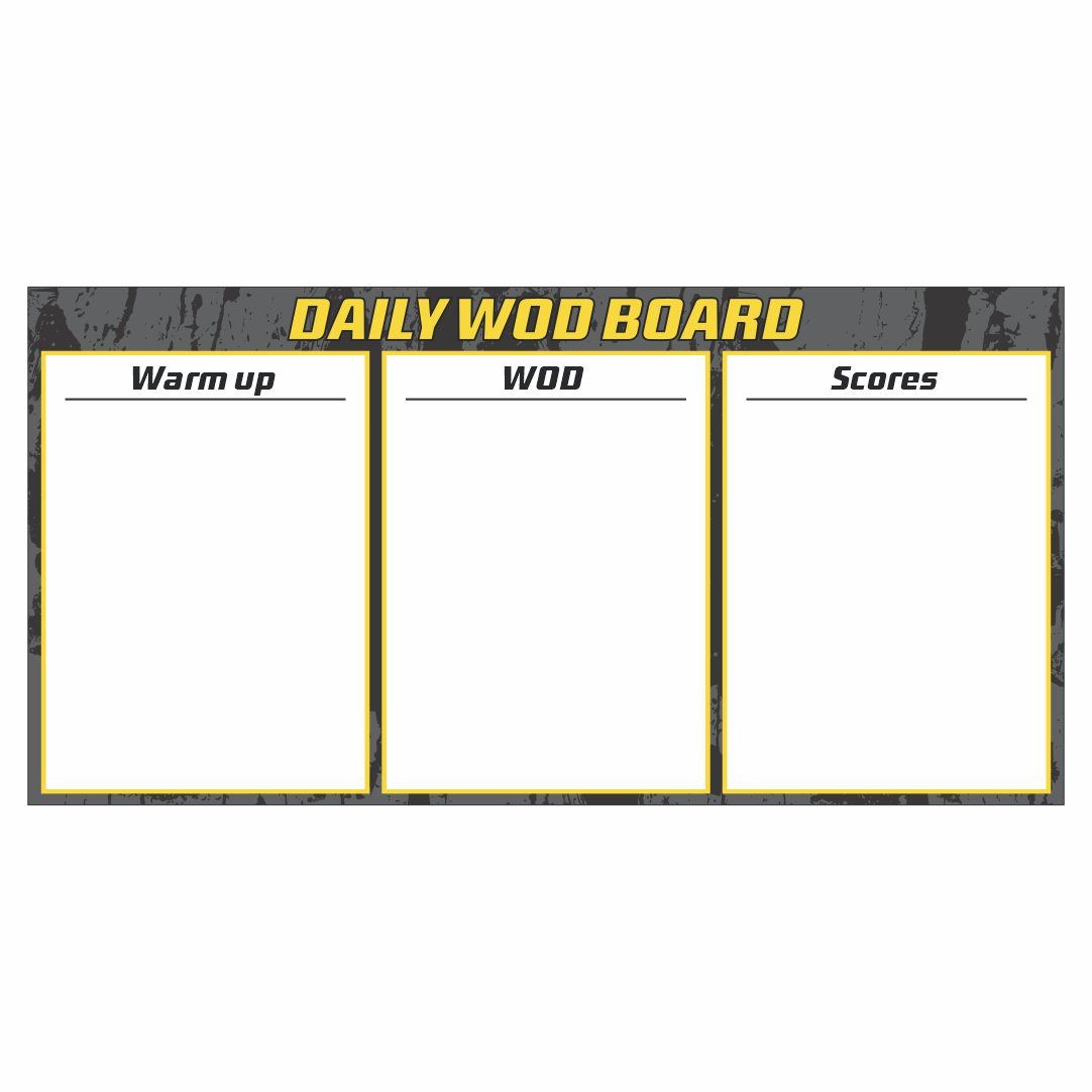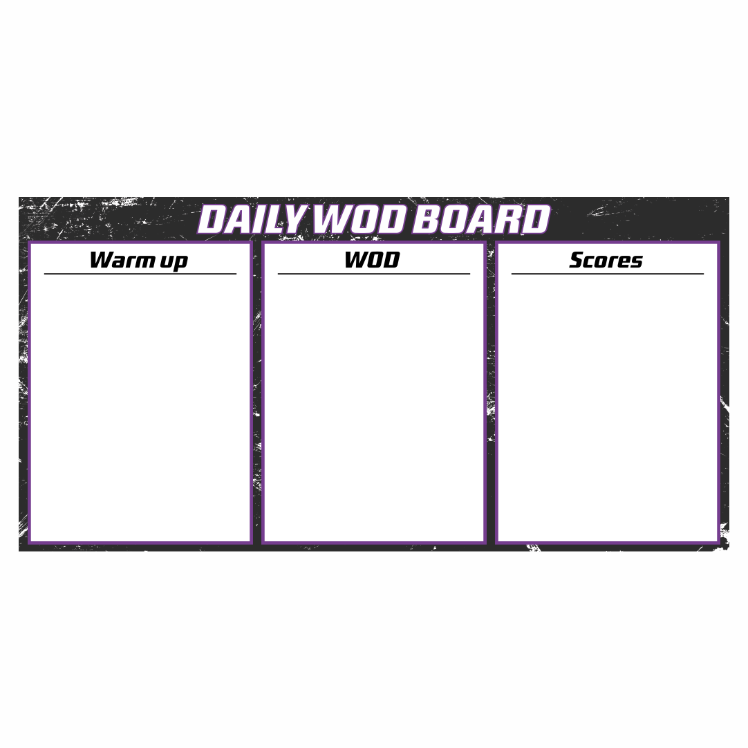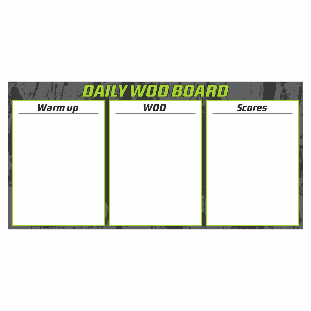 Add organization and professionalism to your box with our custom designed Dry Erase WOD Boards. Several different designs to choose from, customizable to any color scheme. We can even custom design boards for you to meet your specific needs for your box.