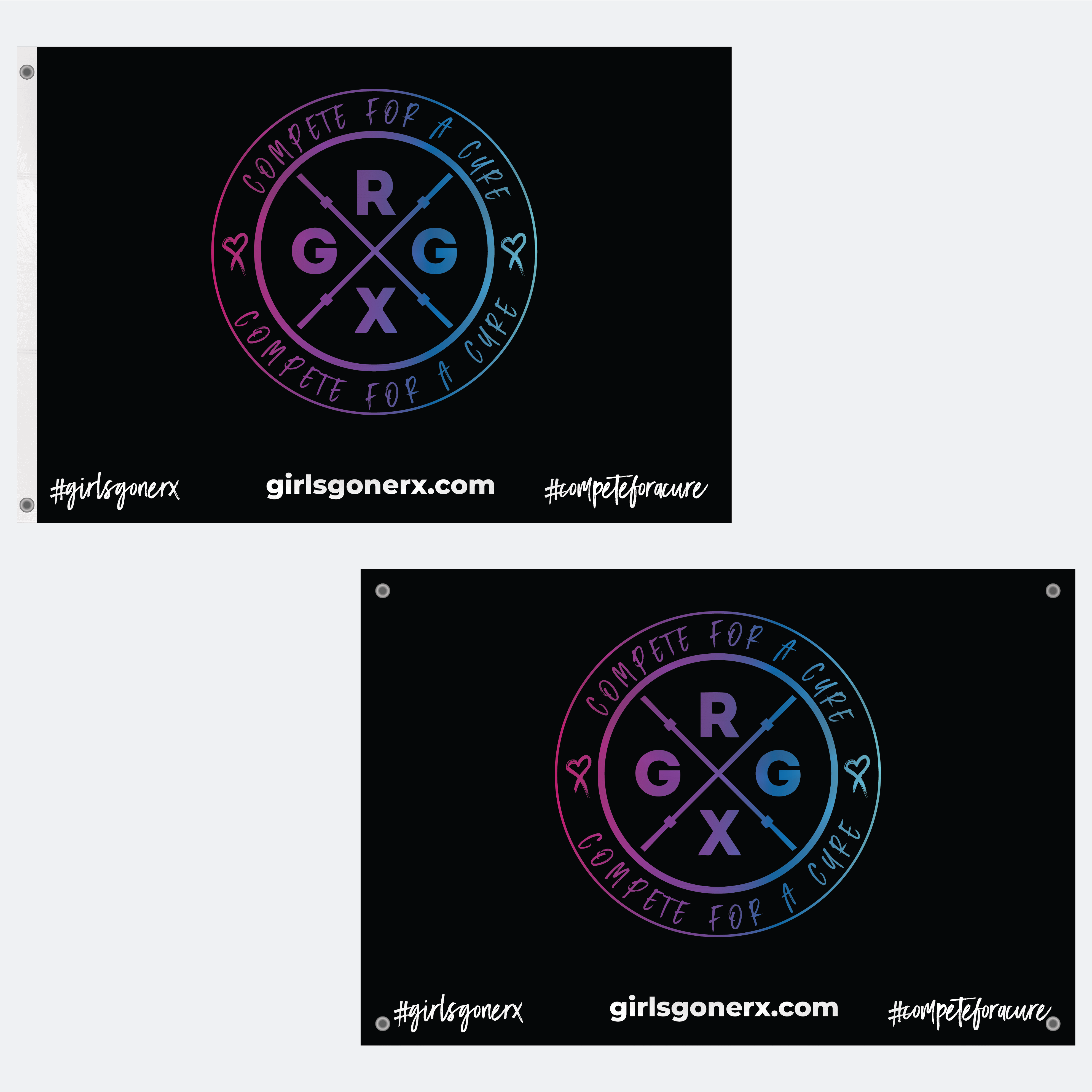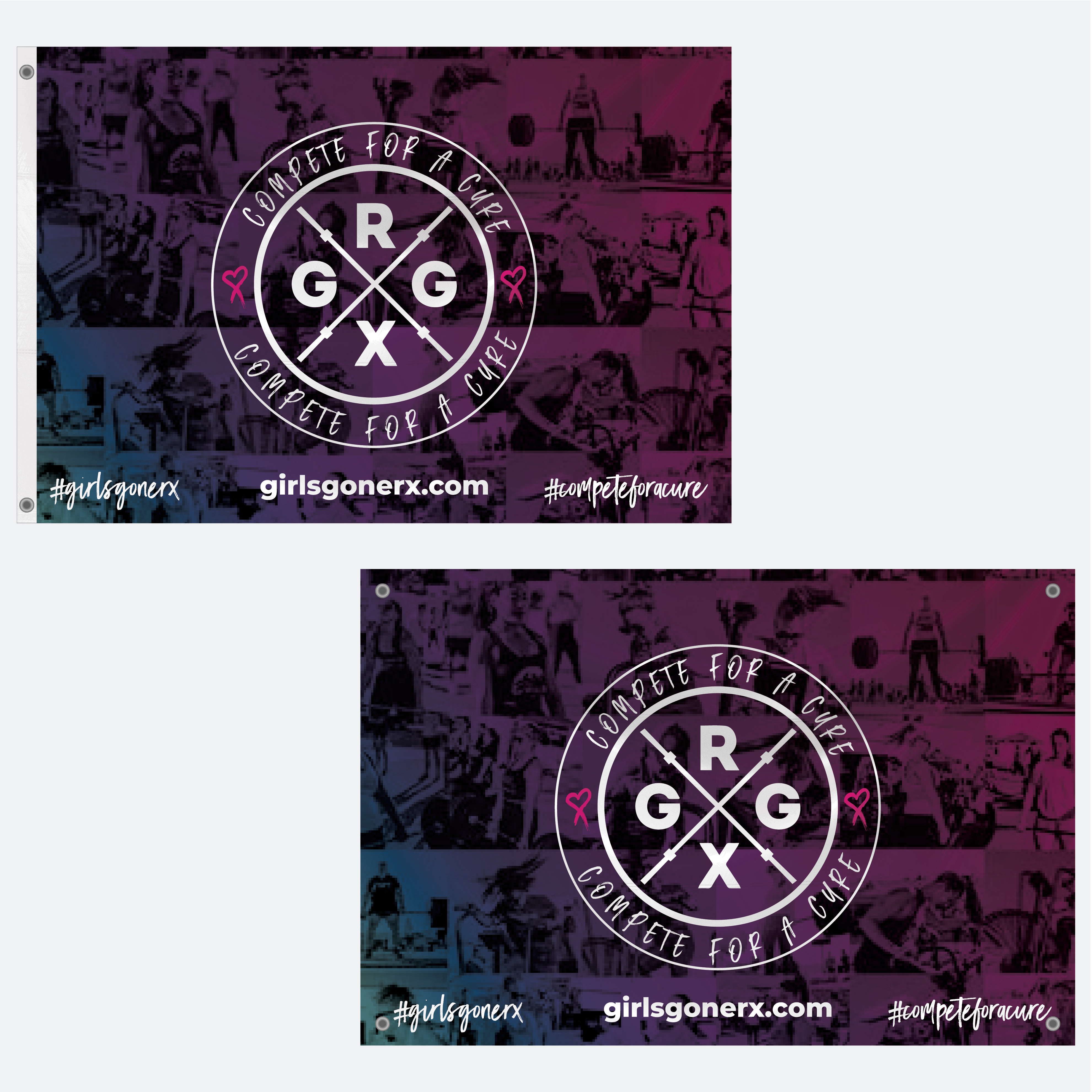 Our GGRX custom pole flags can elevate your box or space.  Flags are printed with high-quality eco-safe inks through our dye sublimation process. Whether you are flying your flag on a pole or simply hanging it in your gym, we offer two types of finishing to accommodate your displaying needs.