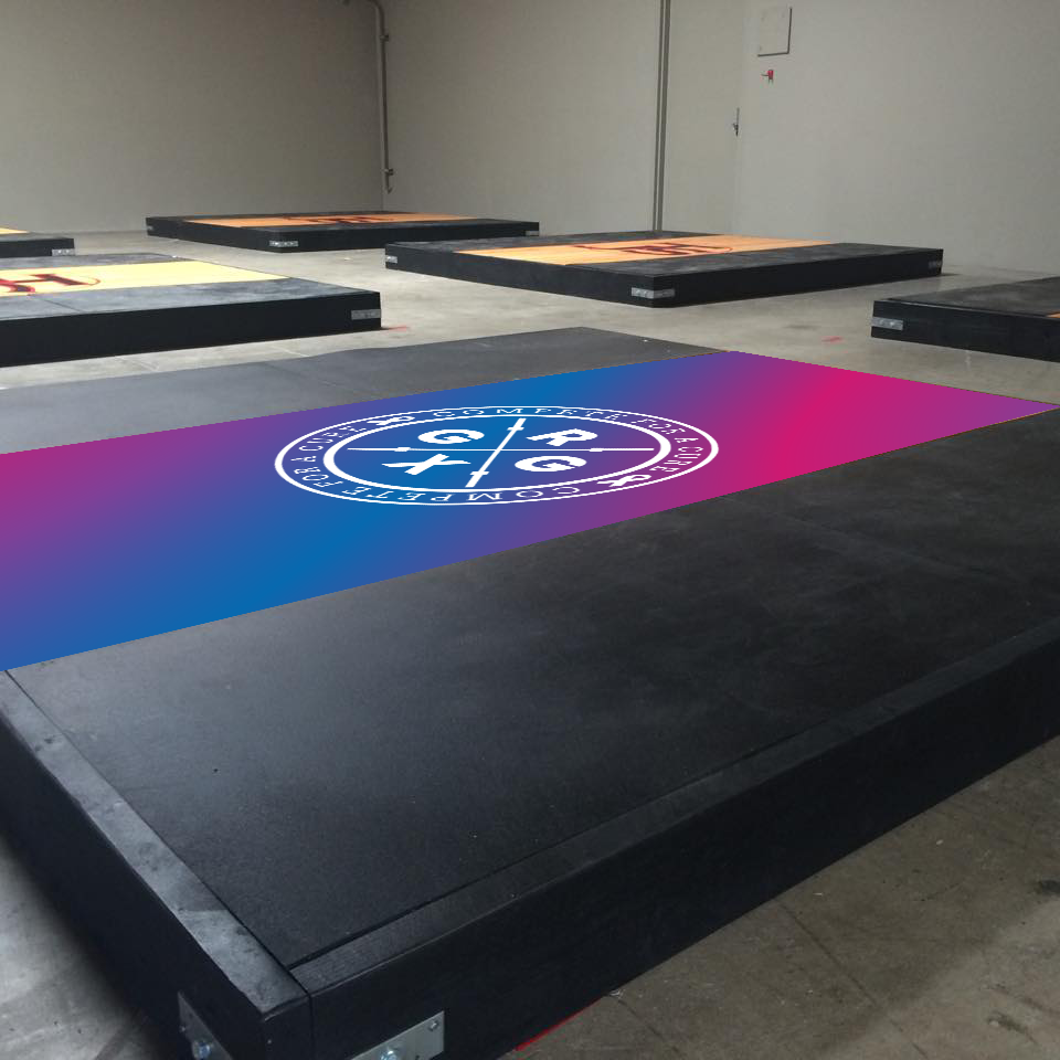 • Produced with 2″ overlap all around so the graphic can wrap around the edge of the platform (helps prevent the edges from lifting)