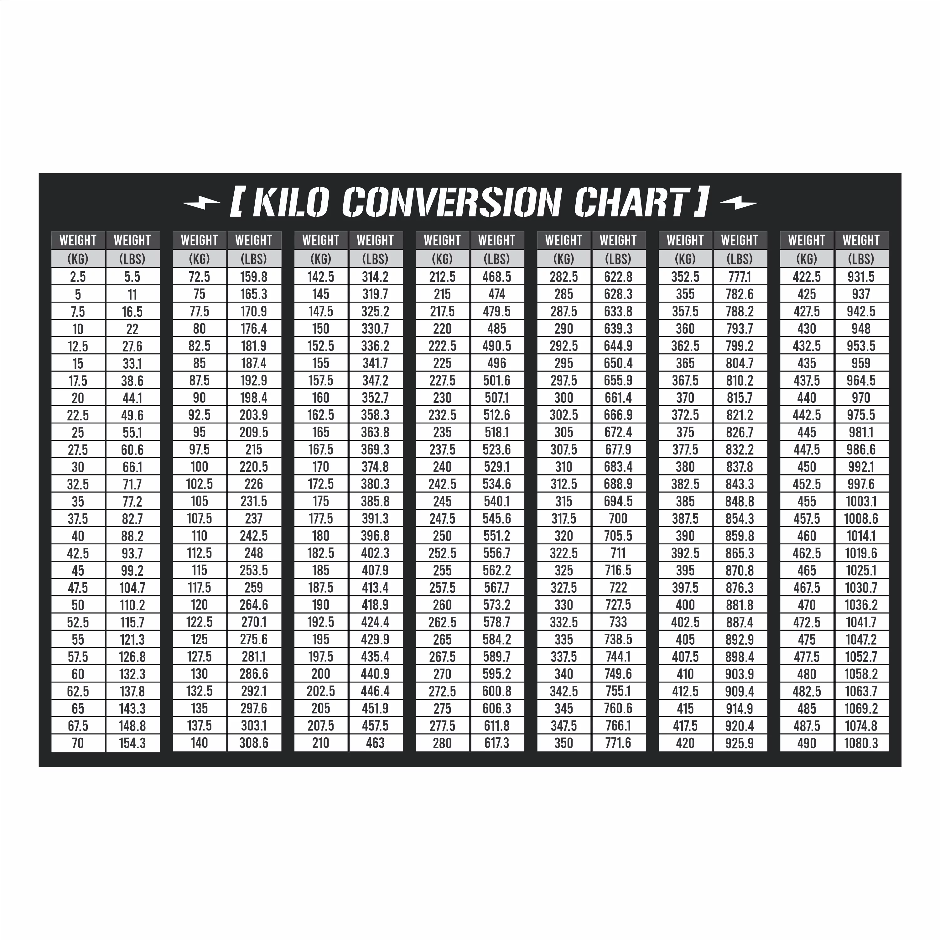 Kilo Conversion Chart