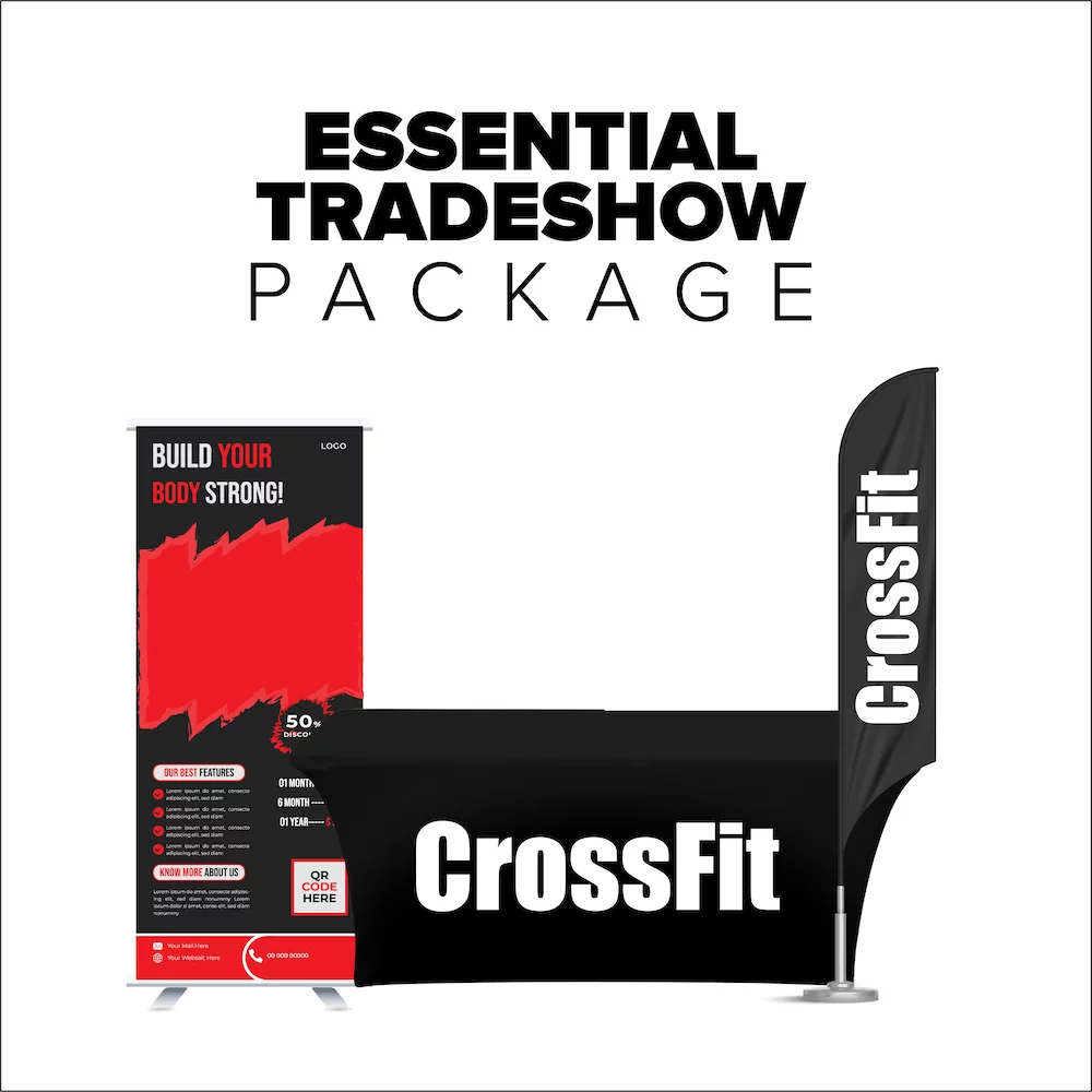 SRX Essential Tradeshow Kit includes a 33.5″w x 80″h Standard Retractable Banner Stand, (1) 14′ Feather Flag and your choice of a 6′ Table Cover. Showcase your company at a competition, event, or tradeshow and make sure your business is seen!