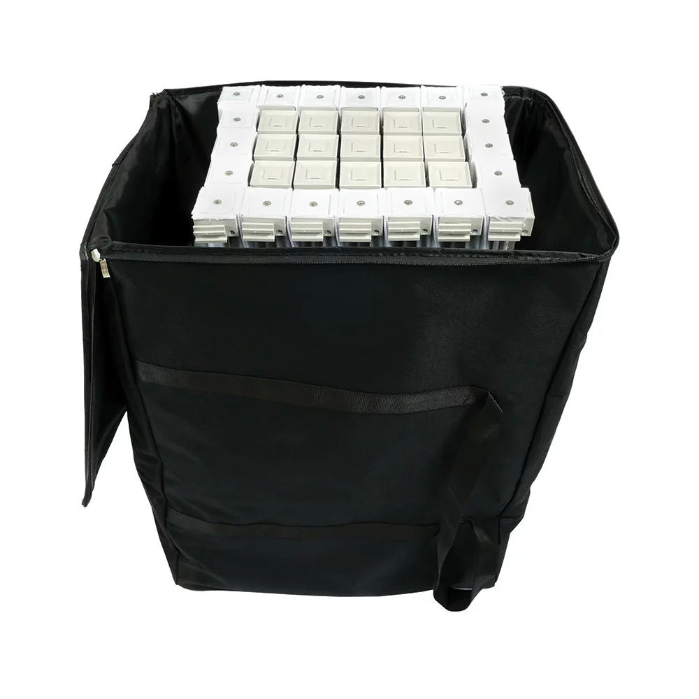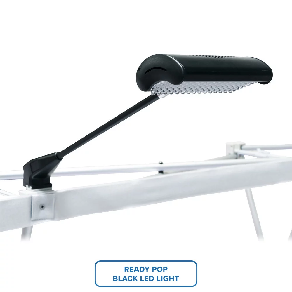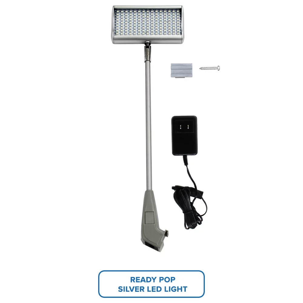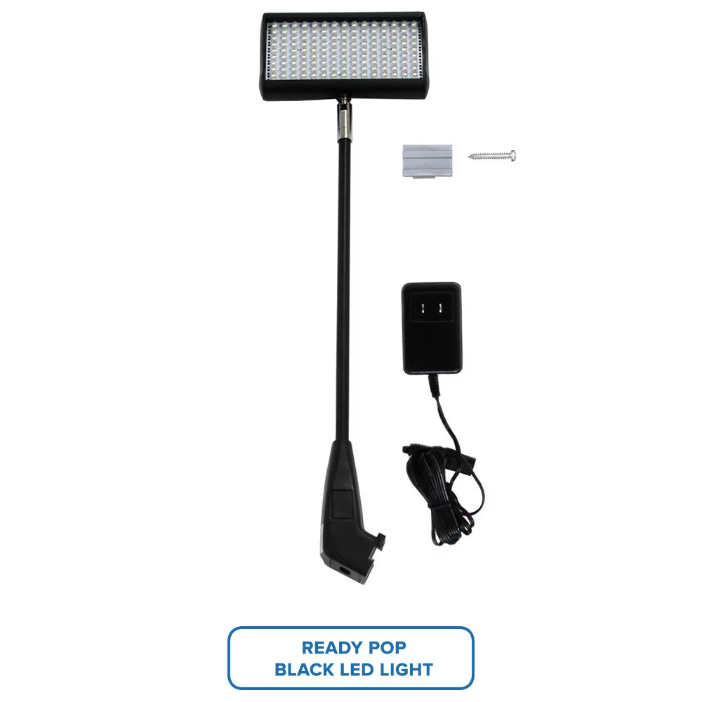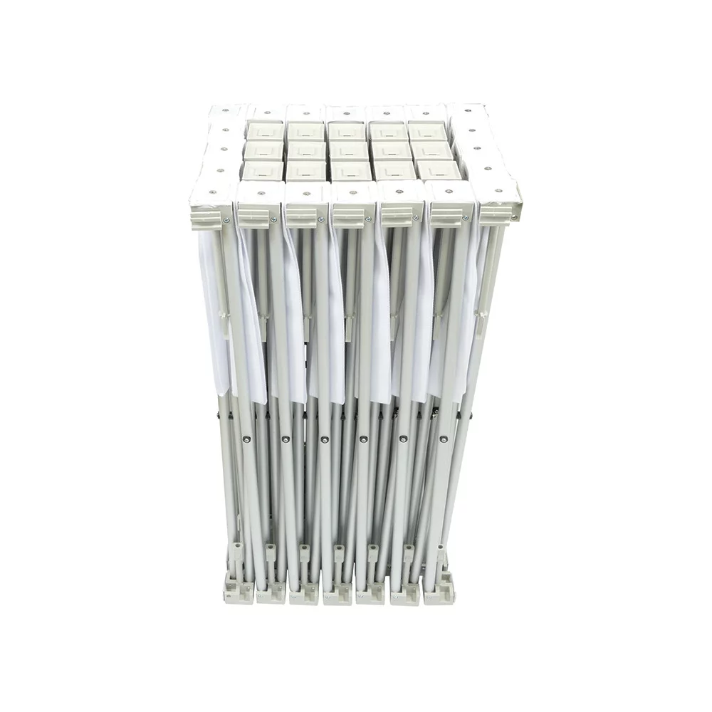 Quickly assembled in minutes with no tools required, the aluminum frame locks into place using plastic hooks. Then, simply fasten the graphic to the frame with the hook and loop attachment. Collapsed, the lightweight frame and graphic fits inside a compact black nylon carry bag.