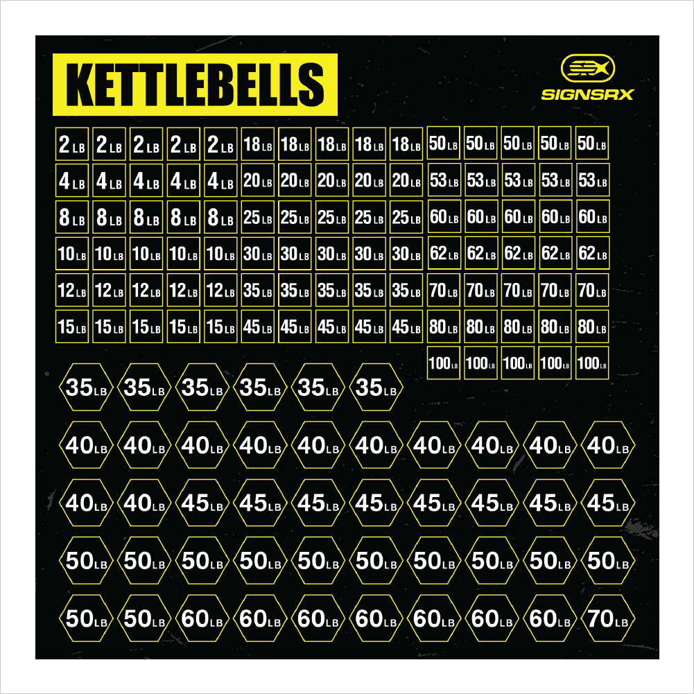 - (1) Kettlebells (1.25″w x 1.25″w ea.) (Overall Sheet Size: 23.875″w x 23.875″h)